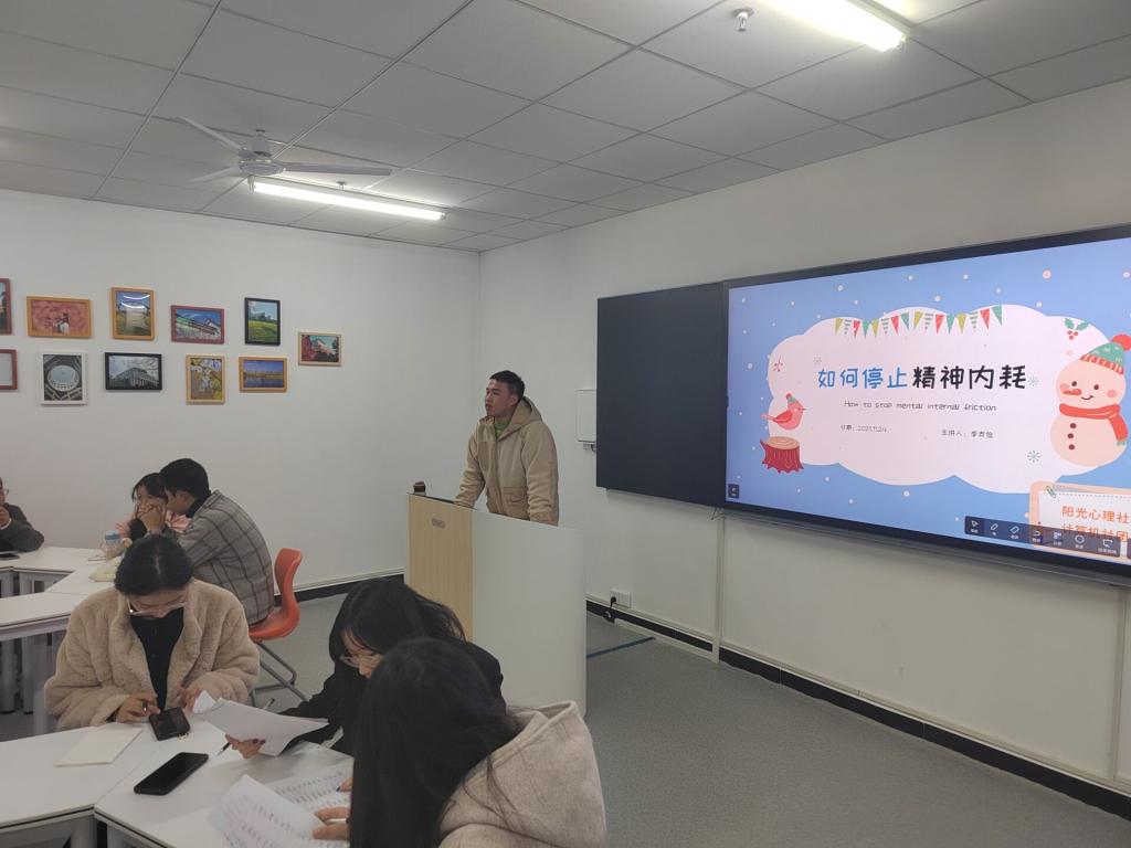 2021年11月24日18:50—20:30阳光心理社团和计算机社团在双创北楼503共同举办了“计算机与心灵的碰撞”为主题的活动,本次活动由阳光心理社团的社长李克俭主持,阳光心理社团指导老师袁悦,双方社团负责人及社团成员共计70余人参加。