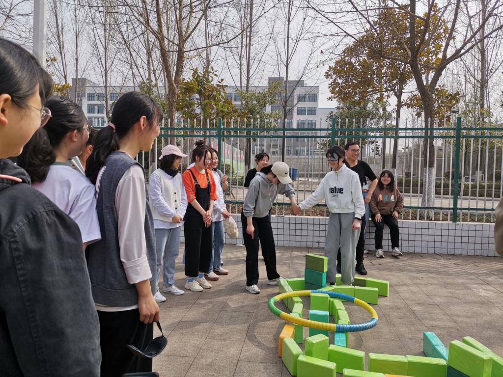校学生会心理健康部于3月15日,在操场上举办“盲人过河”素质拓展活动。本次活动的流程是首先将所有人分为两队,选出队长,队长将队员分为两人一组;其次各队用20分钟的时间给对方布置过河障碍,接着用石头剪子布决定哪一队先闯关,最后有序进行比赛。为了不让自己的小队输掉比赛,部门成员积极组队进行游戏,游戏进行的十分的火热。通过活动的开展,不仅让大家学会团队合作并且增进了部门成员之间的感情,还促进部门成员身心健康,越来越热爱大学生活。