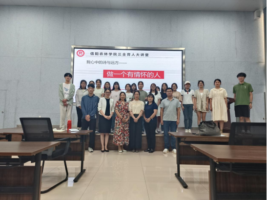 讲座最后,杜丽做了总结发言史亚奇老师入职信阳农林学院这两年成长路上的见证者角度出发对史亚奇老师自身的勤奋努力与大局意识表示肯定与感动,鼓励在场的每一位同学都向史亚奇老师看齐,脚踏实地,只争朝夕,不负韶华,不负自己的大学时光,做一个眼中有光、心中有爱、温暖他人的新时代大学生!