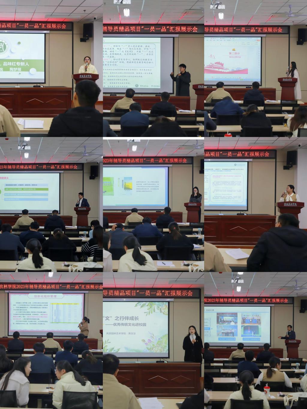 评委通过现场倾听汇报和审阅项目材料,肯定了各个项目的选题、研究态度和成果,针对性的提出指导意见,并进行现场打分。最终,动物科技学院尹磊主持的《红专新人工程体系下专业认同感提升的探索及实践》、旅游学院张博主持的《互联网+背景下大学生日常数字化管理的应用与探究》获得一等奖;管理学院吴昊主持的《“六个一”浸润式大学生入党启蒙教育工程》、药学院吴燕主持的《运用新媒体开展高校学生党建工作的创新模式研究》、动物科技学院刘容序主持的《梦想之路与法同行》、食品科学与工程学院黄卉卉主持的《正心立德,劳动树人——新时代大学生劳动育人实践探索》、风景园林艺术学院黄慧慧主持的《知“文”之行伴成长——优秀传统文化进校园》获得二等奖;动物科技学院张喜文主持的《打造自主学习平台,提升综合素质能力》、陶梦筱主持的《传承耕读文化,品味红专新人》、物流与电商学院赵莹洁主持的《“一三五”育人工程》、风景园林艺术学院李美萱主持的《传承红色基因 助力学生成长》、食品科学与工程学院柳诚刚主持的《强化四个理念贯彻,创新资助育人形式》、旅游学院易冉主持的《保驾护航,从“心”出发》、药学院王泽夏主持的《职业规划对新时代学生择业观的探究与实践》、人文与传播学院郜若霖主持的《“融媒聚力,矩阵引航”——构建融媒时代矩阵化思政育人模式》获得三等奖。