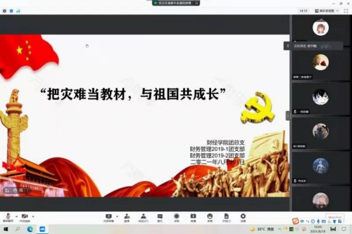 为引导广大青年团员“把灾难当教材,与祖国共成长”,团结一致、迎难而上,坚决打赢疫情防控阻击战和灾后救援重建攻坚战贡献青春力量,财经学院各班利用腾讯会议开展“把灾难当教材,与祖国共成长”线上主题团日活动,财经学院全体学生与各班辅导员参加此次活动。