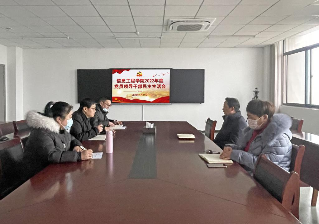 2023年1月11日下午,信息工程学院党总支在双创中心615室召开2022年度党员领导干部民主生活会,会议由院党总支书记梁其宇主持,学院班子成员参加。校长邢勇指导会议开展。