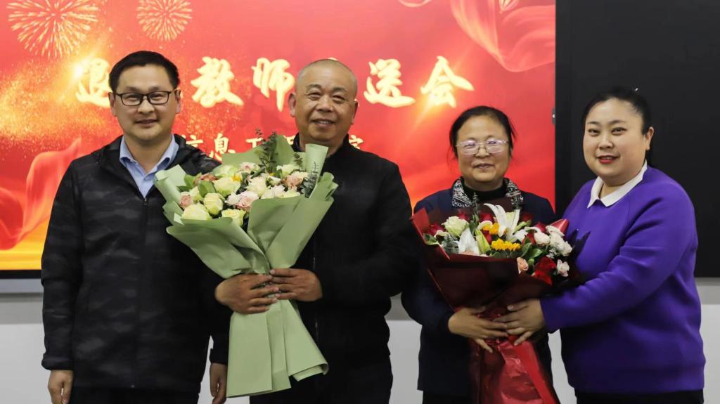 最后,由两位教师代表为退休教师献上鲜花,感谢退休教师为学院发展所做出的贡献,参会老师与两位退休教师合影留念。(信息工程学院 郝晨)