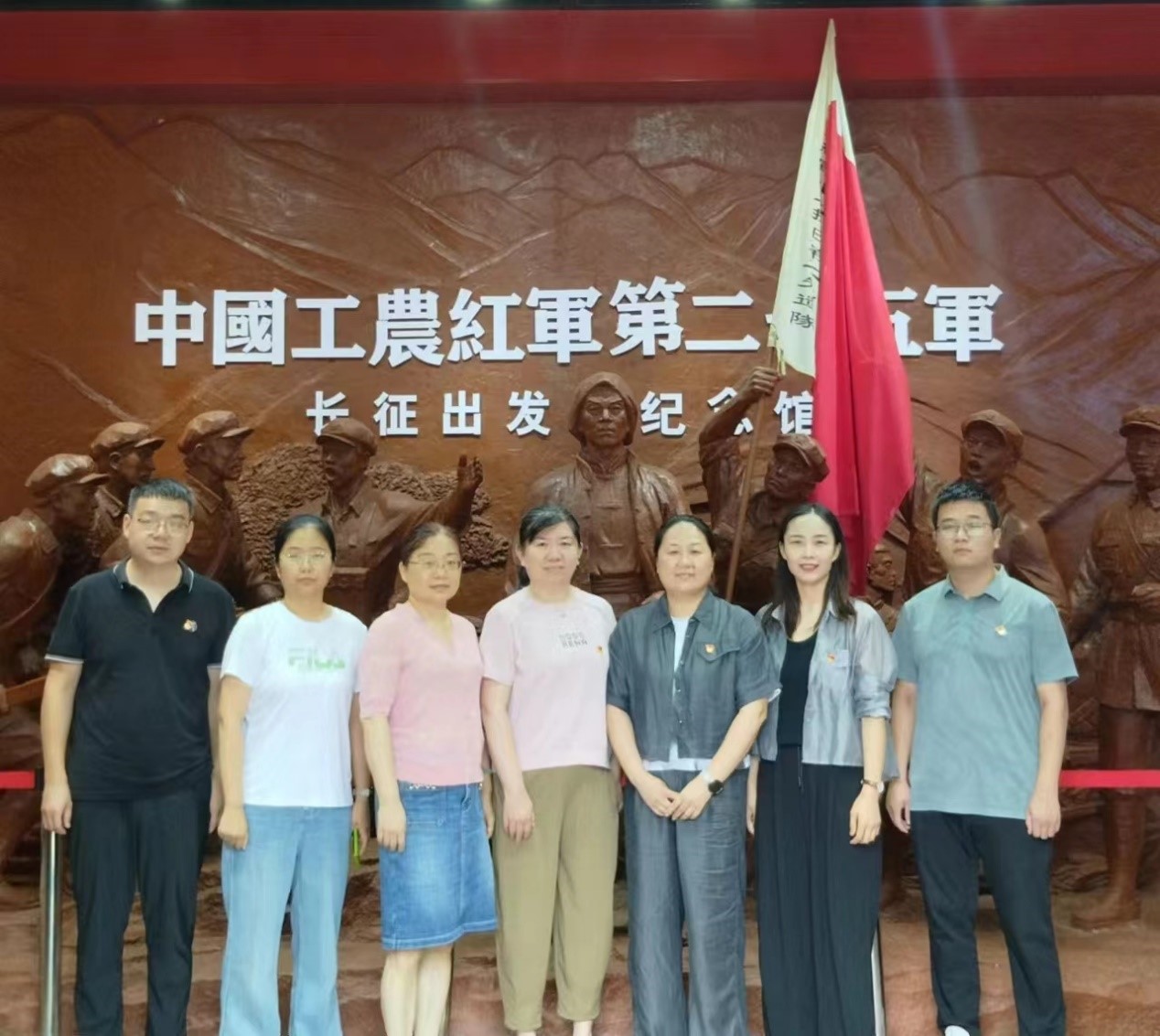 在何家冲政治文化广场,全体党员佩戴党员徽章,举起右拳,面对鲜红的党旗,重温了入党誓词,将担当与责任融入到铮铮誓言之中。在红二十五军长征出发地纪念馆,大家参观了一件件珍贵的文物、一个个鲜活的雕塑和一幅幅珍贵的照片,共同追忆艰苦卓绝的革命岁月,缅怀革命先烈的丰功伟绩。随后,大家沿着先辈的足迹,重走长征路,切身感受红二十五军坚定不移的革命意志和对理想信念的执着追求。