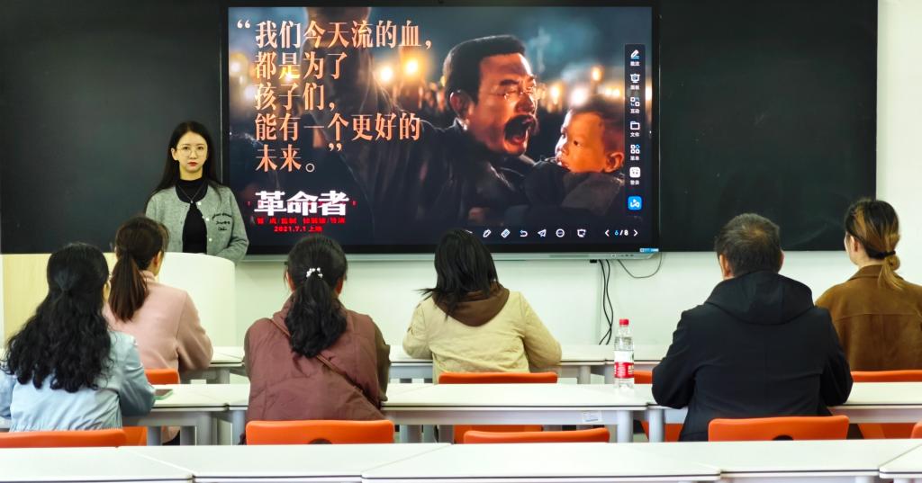 支部书记赵喜玲首先带领全体党员,深入学习领会了习近平总书记在庆祝中华人民共和国成立75周年招待会上的重要讲话精神,强调推进中国式现代化,必须坚持奋发有为、聚力攻坚。接着观看红色电影《革命者》,通过观看爱国影片,带领教师党员重温革命岁月, 感受英雄豪情, 红色电影, 激荡心灵深处,有效激发广大党员干部勇立潮头、敢为人先的精神,进一步激发了大家的爱国热情。