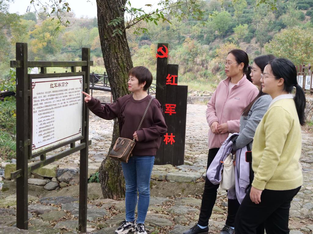 出发前,支部成员共同学习了习近平总书记考察湖北时的重要讲话精神,并紧密联系此次活动的主旨,深入领会总书记提出的“在城乡融合发展和乡村全面振兴上奋发有为”指示精神。在参观商城县里罗城“红色画廊”过程中,教工党支部的党员们向学生党员们讲述了党的光辉历程和革命先烈的英勇事迹,并表示里罗城是红四军、红二十五军建军集结地,同时也是一幅展现从精准脱贫到全面小康,再到乡村振兴的生动画卷。在参观的同时,支部成员还开展了课程实践活动,让学生接受红色教育,提升专业技能的同时,探寻里罗城“红绿”共融、协调发展中蕴含的乡村振兴蓬勃力量,探索数字媒体专业助力数字乡村之路。