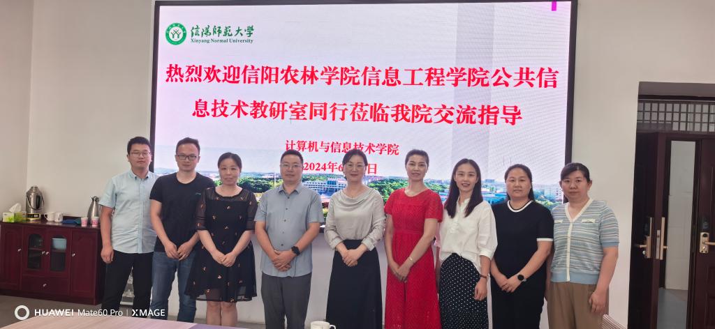 6月26日上午,信息工程学院公共信息技术教研室主任华敏老师带领团队成员,前往信阳师范大学计算机与信息技术学院进行课程建设交流访问。