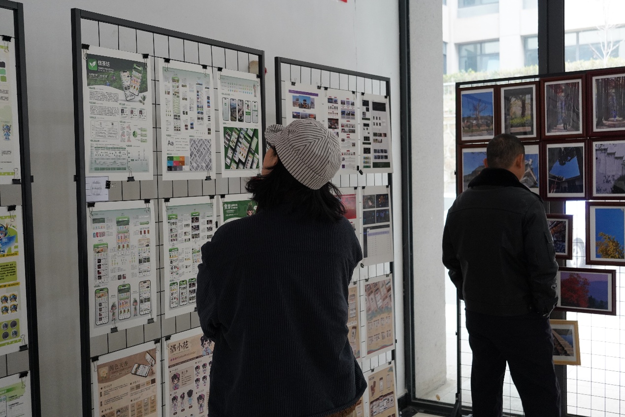 展览设置了“UI设计作品”“平面设计作品”“摄影作品”“AIGC作品”“三维建模”“视频剪辑”“智能机器人”等多元展区。这些作品题材广泛,涵盖UI界面设计、网页设计、APP设计、三维建模、包装设计、平面广告设计等多个领域,既有日常教学中的优秀课堂作业,也包含体现学生综合专业能力的期末设计与竞赛获奖作品。
