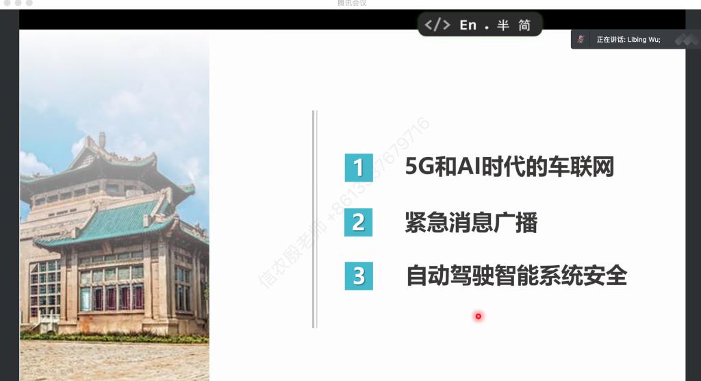 吴教授主要介绍了5G赋能车联网,车间安全协作,基于V2V的紧急消息传播,以及车联网面临的安全威胁,包括传感器安全、智能决策模型安全、对抗样本攻击等问题,并探讨了一些前沿的防御技术。2个小时的报告深入浅出,图文并茂,具体生动,让人受益匪浅。最后,青年教师就车联网及网络安全等方面的问题进行了提问,吴教授针对问题逐一做出解答。
