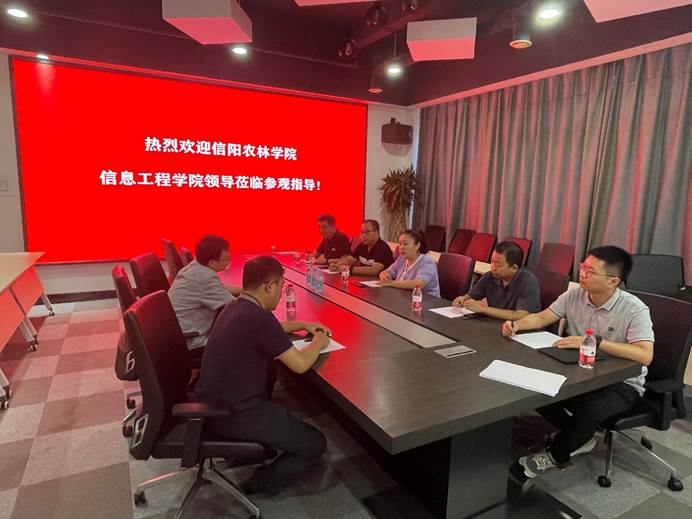 在信阳榕基信息技术有限公司,教师们与公司高层进行了深入交流,就政务平台建设、数据安全、区块链技术等领域进行了研讨。教师们就平台运营过程中产生的大量非结构化数据的挖掘、计算、降噪等问题,为企业提供新的技术思路和解决方案,同时也了解了企业对人才培养的需求和建议。潘赟副院长表示,学院还期待进一步深化与企业的研发合作,共同开展重大科技项目,为信阳地方经济的转型升级和科技创新贡献更多的力量。