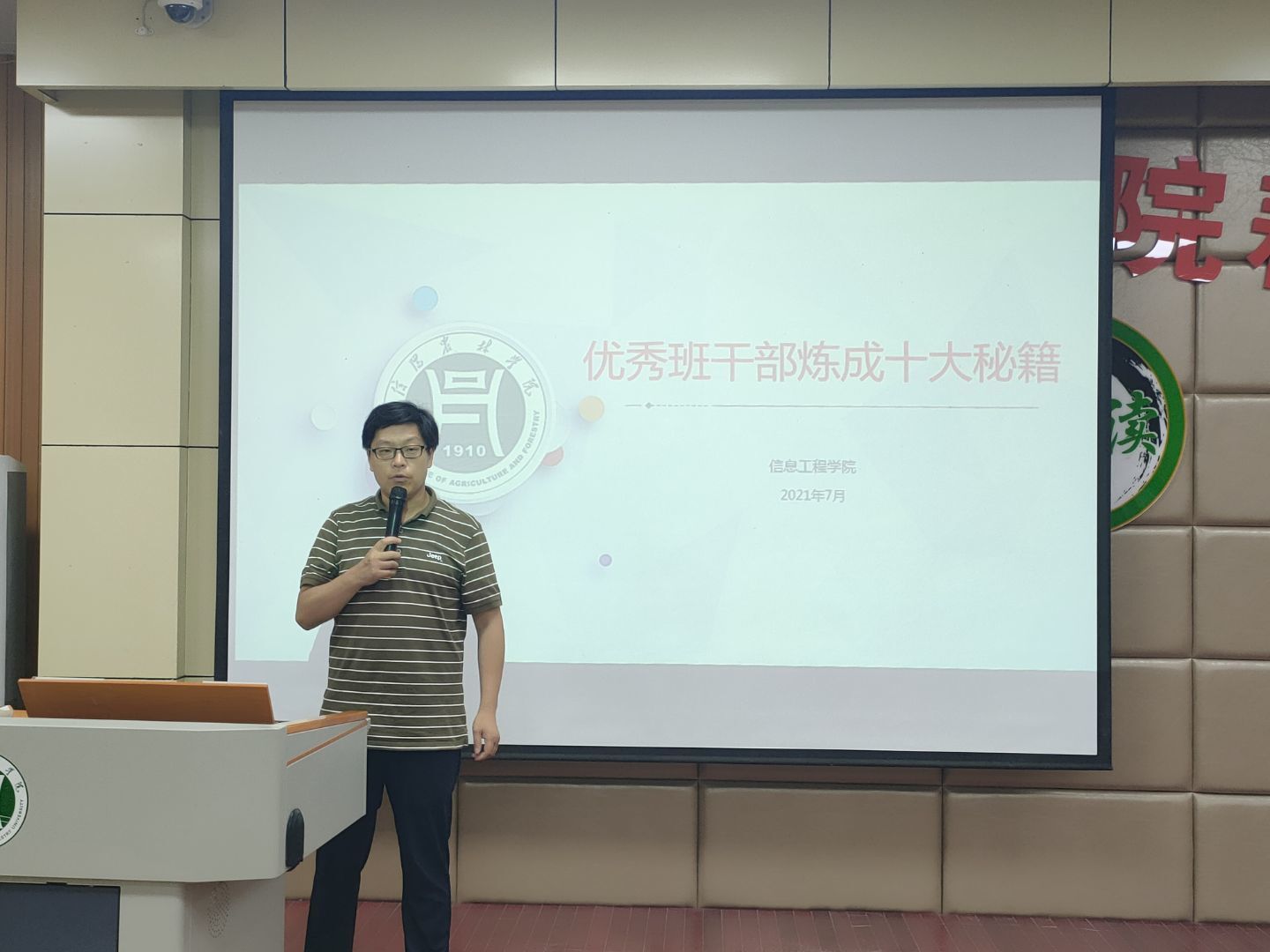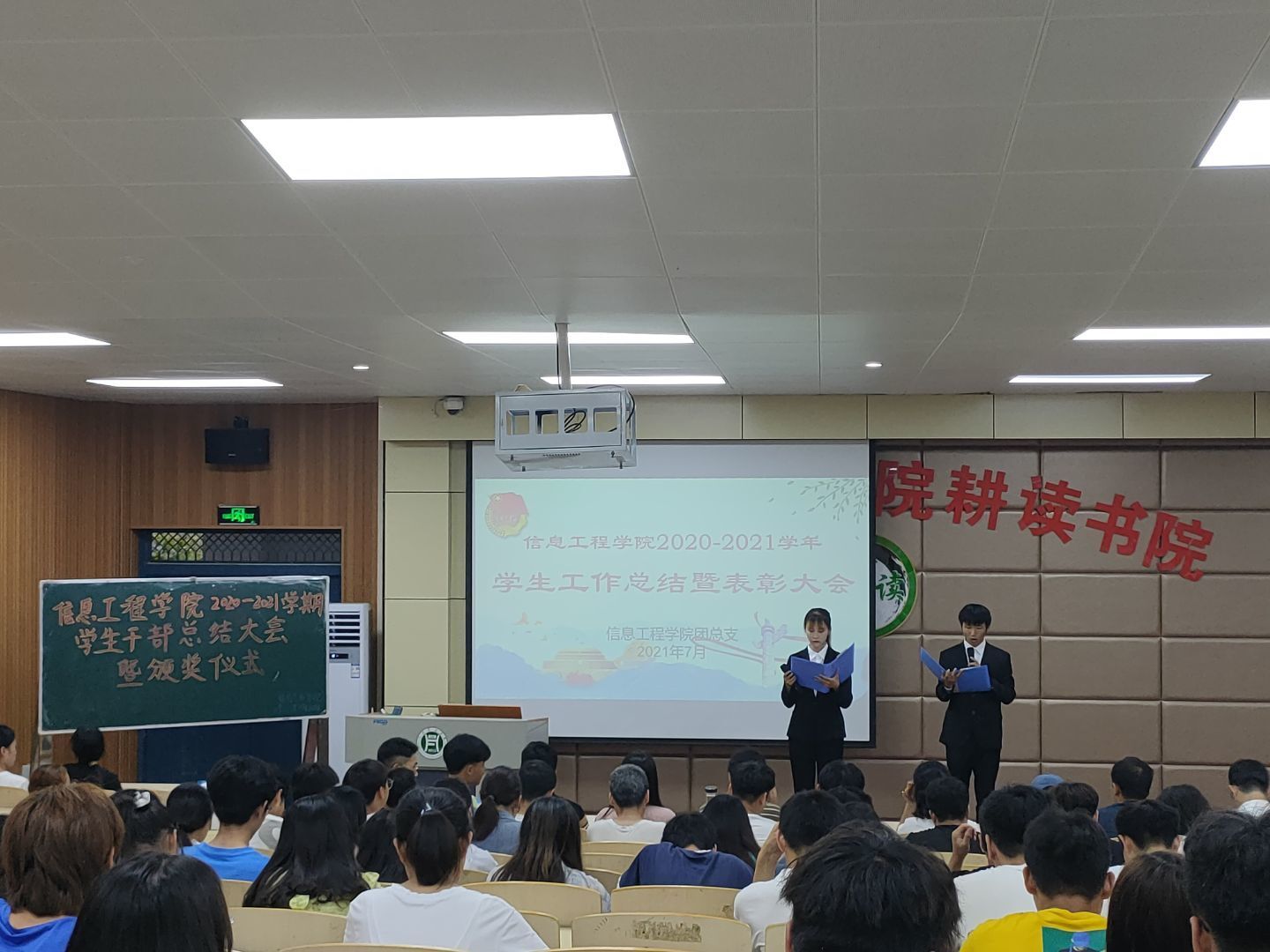 为了全面总结本学期各项工作经验,谋划新学年工作措施,增强全体学生干部队伍的责任感和使命感,激励全体学生干部奋发向上、展望未来的工作激情,信息工程学院于2021年7月5日晚上7点在二教204教室召开了2020-2021学年学生干部总结大会暨颁奖仪式。党总支副书记朱猛,团总支书记严舒平,19级、20级辅导员及院学生会干部参加。