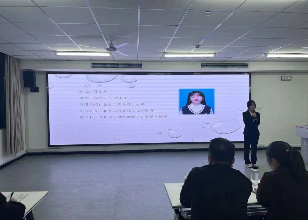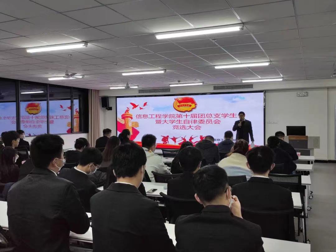 信息工程学院于11月1号星期二晚上7点在双创608举行大学生自律委换届大会。会议由党支部副书记朱猛主持,团总支书记严舒平、各位辅导员老师以及学生会各部门成员参加。