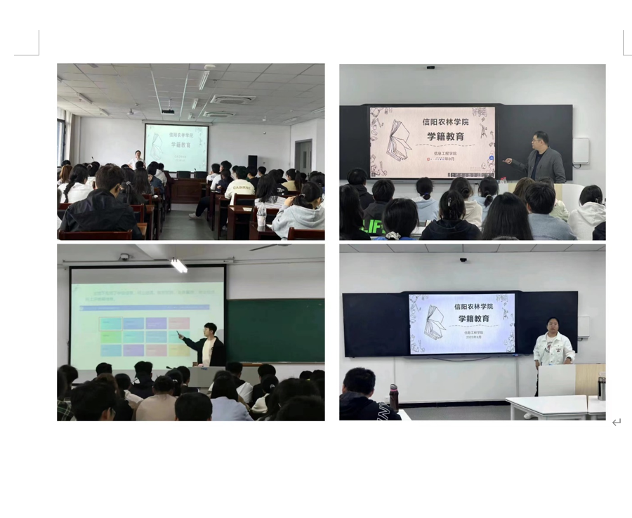 9月26日~9月28日,信息工程学院2023级新生辅导员分专业在教学楼开展学籍管理讲座,由严舒平、许华瑾等新生辅导员主讲,2023级全体新生参加。