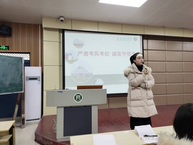 为做好考前教育以及假期安排,严肃考风考纪、提高学生安全防范意识,信息工程学院各辅导员于2020年12月30日至2021年1月6日在二教教室召开诚信考试主题班会暨假期安全教育主题班会。