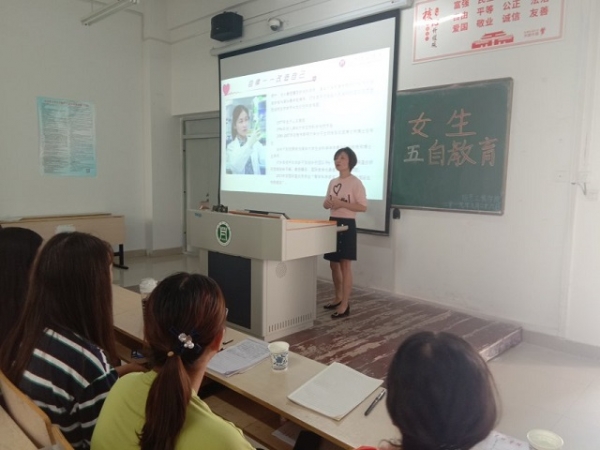 闵洁老师从认识自己、接纳自己及改造自己三个方面入手,对向同学们详细阐述了“五自”教育的内涵——自知、自爱、自律、自尊、自保。此外,闵洁老师着重强调了女生们要夯实专业基础、理性对待感情、自觉抵制不良诱惑及学会自我保护。珍惜四年的大学生活,不断提升自己的综合素质。最后,闵洁老师从培养健康心态,制定学习目标,提高专业技能,培养兴趣爱好,树立正确价值观及学会感恩六个方面寄语19级全体女生,祝福大家成为洁身自好、自力更生、内外兼修的女孩。