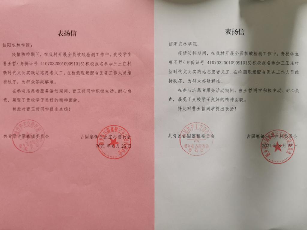 从8月5日开始,商丘疫情从爆发到形式越发严峻,一些地区被划为高分险地区,商丘部分列车停运,每个村庄开始封路拒绝外来私自返商人员,每个村都设有执勤卡点,严格统计每一位返乡人员的行程。网络工程19级的赵建赢同学在疫情开始之时就报名参加了社区志愿服务活动,积极为当地疫情防控出一份力。他说:“这是我第一次参加志愿活动,我想说志愿者工作也很辛苦,但是更多的是感到很值得,也有了很多不一样的体会,是我人生中很重要的一课。灾难带给我们痛苦,同时,灾难也让我们变得更加的团结,更加的坚强。”