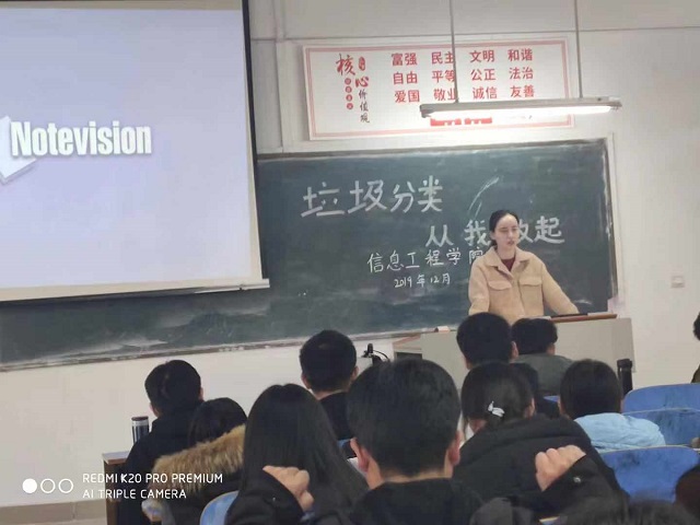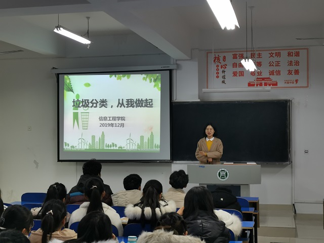 2019年12月11-13日,信息工程学院各班召开了以垃圾分类为主题的班会,各班辅导员主讲,班级全体同学参与。