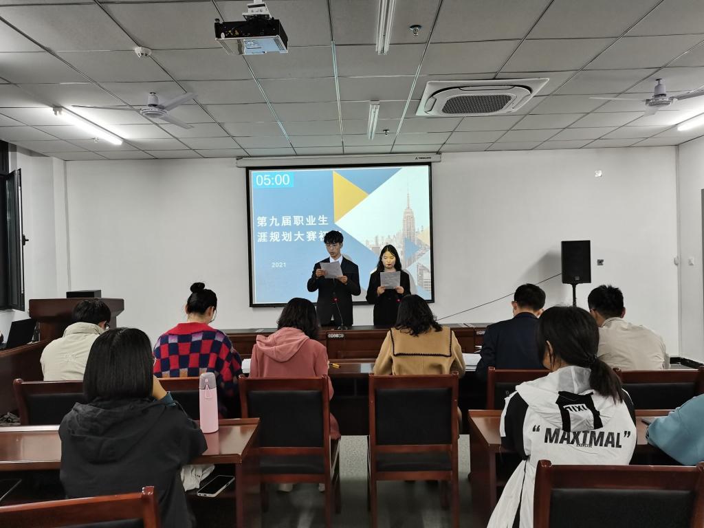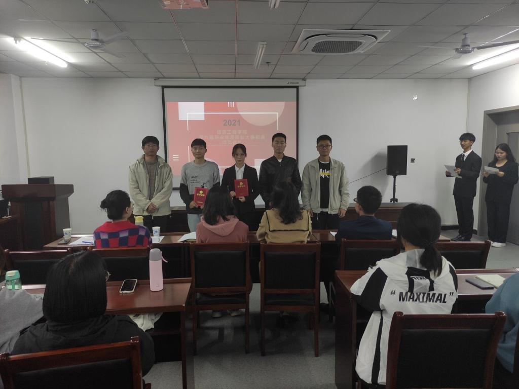 为引导学生合理规划大学时光,树立正确的择业观和就业观,提升综合素质和职业能力。信息工程学院于2021年10月28日晚上7点在双创中心708举办了第九届大学生职业生涯规划大赛初赛。信息工程学院团总支书记严舒平、辅导员许华瑾老师、李洋老师、胡俊霞老师、郝晨老师、蔡忠祥老师担任本次比赛的评委,部分学生到场观赛并为选手们加油助威。