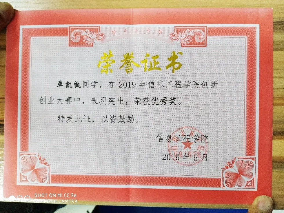 —2019年5月获得信息工程学院创新创业大赛 优秀奖