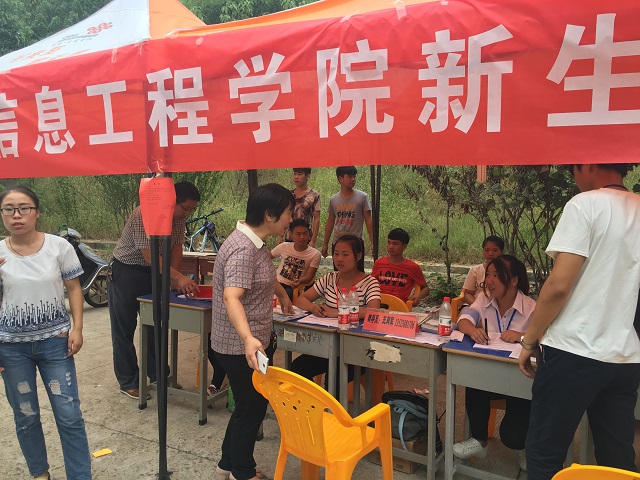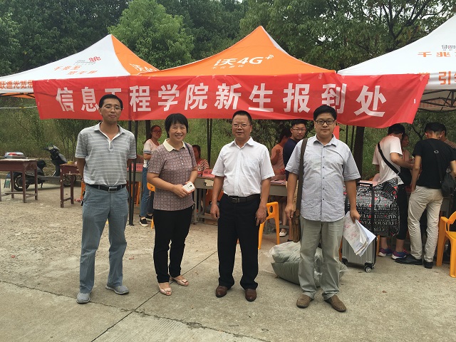 为全面了解迎新准备工作,进一步确保迎新工作的顺利进行,9月9日下午4:00,信息工程学院党总支书记胡凤堂、院长商信华、副院长李友国、团总支书记朱猛一行来到我院迎新现场,检查了迎接2016级新生的准备工作。