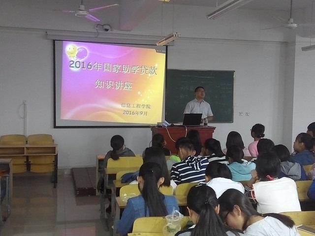 2016年9月28日上午8:00——11:30,信息工程学院在二教309教室开展了以“学生资助及贷款教育”为主题的教育活动,此次活动由院贷款专员王同军老师主讲,2016级全体新生参加了本次教育活动。