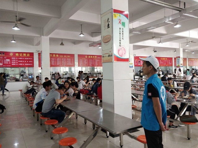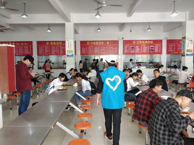 在活动过程中,各班团员代表作为校园文明督察代表轮流在餐厅开展了志愿服务执勤,在就餐期间维持就餐秩序,主要针对买饭期间不自觉排队、不文明就餐、不主动收回餐具等现象进行了劝导,并督促同学们珍惜粮食,遏制“舌尖上的浪费”。这样的引导使得很多同学自觉排队买饭,加入“光盘行动”,并在用餐后将餐具放到收餐车。“文明就餐”活动给同学们创造良好的用餐环境,也体现出大学生优秀的文明素养。