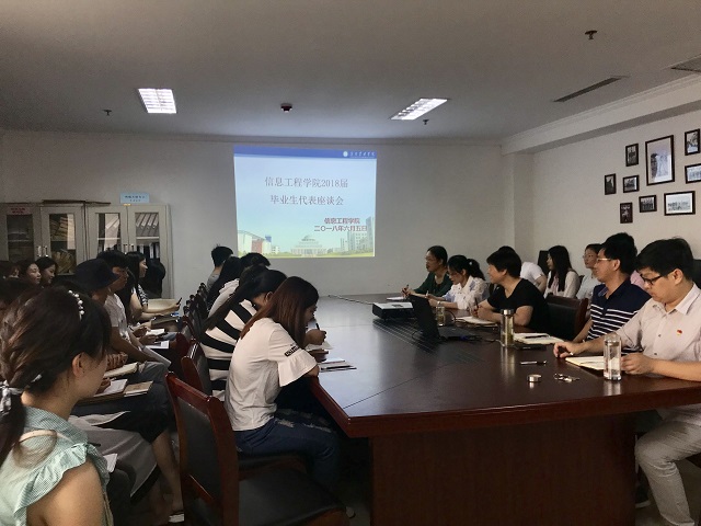 6月5日上午,信息工程学院在行政楼921会议室举行了2018届毕业生座谈会。我院院长商信华、副院长李友国、团总支书记朱猛、软件工程教研室主任侯丽萍、数字媒体实验室主任李清玲以及毕业生辅导员出席了本次座谈会,与我院36名2018届本科、专科毕业生代表亲切座谈。