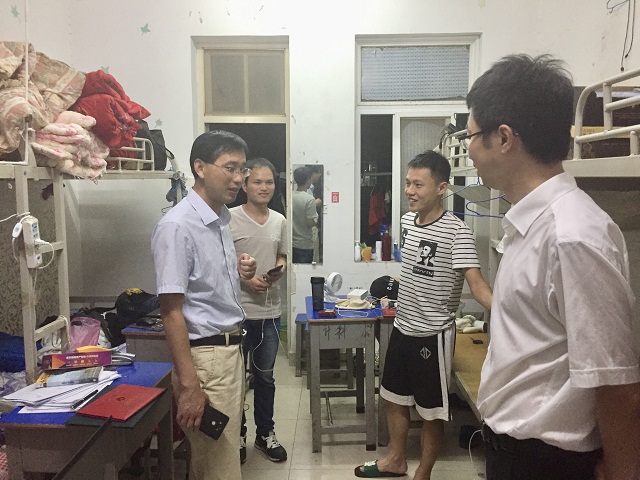 又是一年毕业季,信息工程学院近400名学子即将离别母校,奔赴人生新征程。为了充分了解毕业生离校前的情况,确保毕业生文明、安全离校,6月7日晚,信息工程学院院长商信华、副院长李友国与毕业生辅导员一起走访了我院毕业生寝室看望即将毕业远行的信工学子。