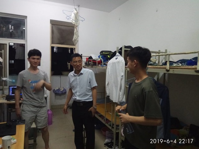 为了掌握毕业生离校情况,确保毕业生安全文明离校,2019年6月4-5日,信息工程学院院长商信华、副院长李友国和辅导员老师深入寝室送别毕业生。