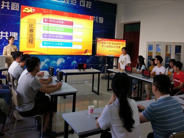 为进一步学习好、宣传好、贯彻好党的十九大精神,调动学生党员学习的积极性和主动性,信息工程学院学生党支部于6月18日晚在1A404举办了“礼赞新中国,奋进新时代”学习强国知识竞赛活动,我院党总支书记胡凤堂、组织员赵喜玲以及各支部书记到场参与了此次活动
