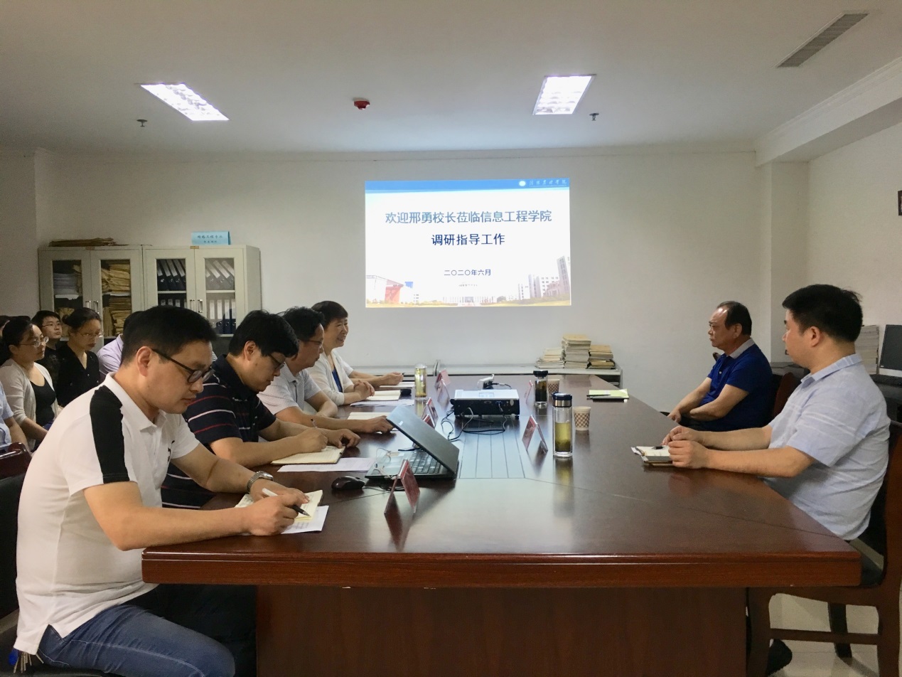 6月22日上午,校长邢勇到信息工程学院调研指导工作,学院班子成员、全体科级干部参加了座谈会。会议在综合楼921会议室召开,由学院党总支书记梁其宇主持。