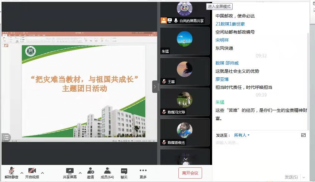 9月15日,信息工程学院团总支分别线上召开2021级新生“把灾难当教材,与祖国共成长”主题团日活动,物联网工程、网络工程、数字媒体技术、数据科学与大数据技术专业257名新生参加了本次活动,活动由各班辅导员主持。