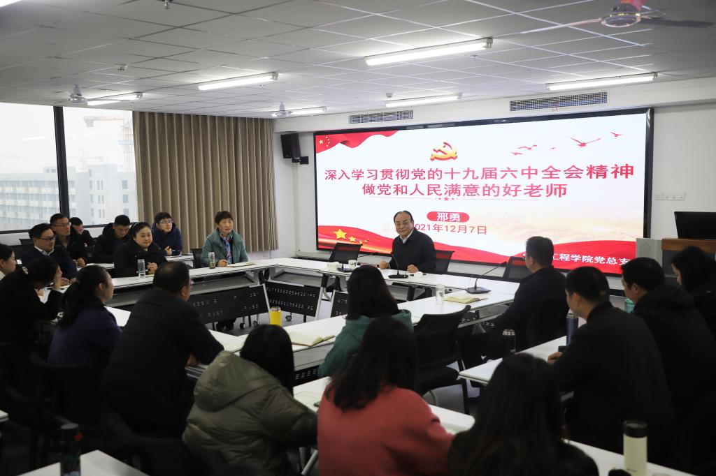 为扎实推动党的十九届六中全会精神落地落实,12月7日下午,校长邢勇到信息工程学院作专题报告,以《深入学习贯彻党的十九届六中全会精神做党和人民满意的好老师》为题,宣讲党的十九届六中全会精神。学院班子成员、全体教职工参加会议,会议由院党总支书记梁其宇主持。