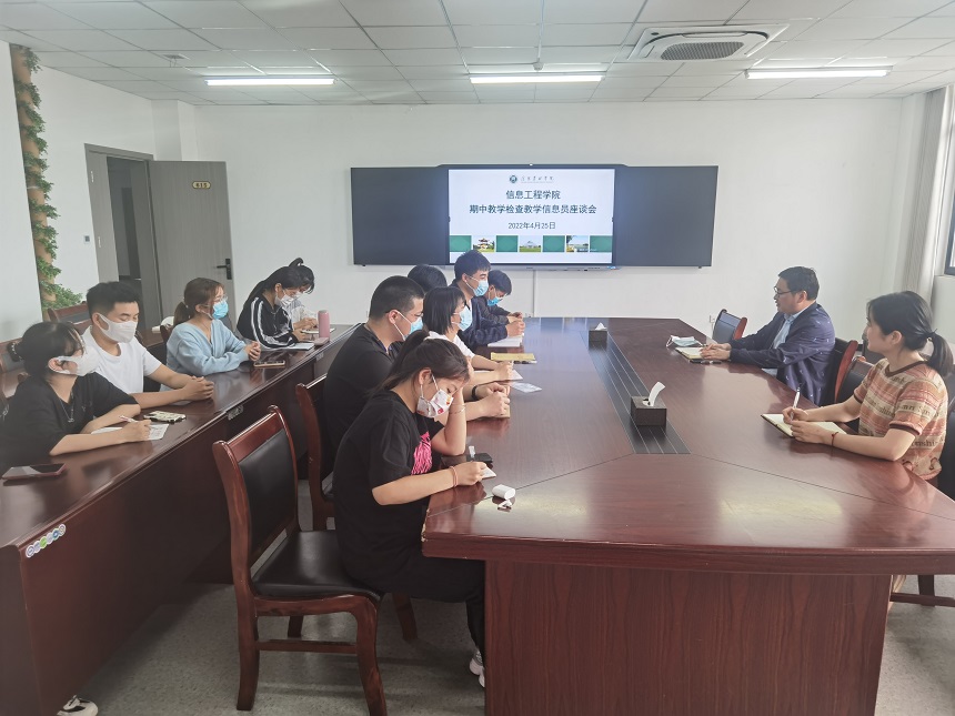 2022年4月25日,信息工程学院在双创中心615召开2021-2022学年春夏学期期中教学检查学生座谈会,学院副院长何勇、教学秘书罗丹及16名学生代表,采用"面对面"形式开展座谈会。座谈会由副院长何勇主持。