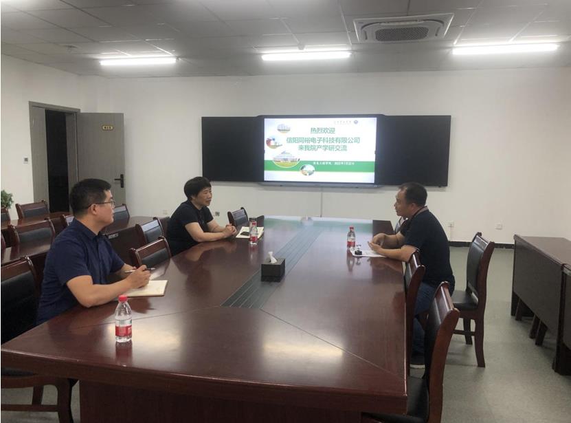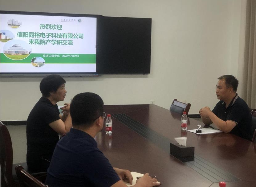 为进一步贯彻落实教育部、教育厅及学校关于“访企拓岗促就业”专项行动要求,7月22日上午,在双创中心615室信息工程学院院长商信华与信阳同裕电子科技有限公司总经理舒鹏就产学研合作、学生就业、实习基地建设方面进行深入交流。大数据技术教研室主任吴锋参加了此次活动。
