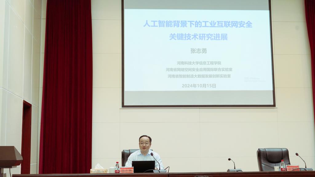 10月15日下午,河南科技大学信息工程学院院长张志勇教授应邀在图书馆六楼报告厅作了题为“人工智能背景下的工业互联网安全关键技术研究进展”的学术报告。信息化建设与管理中心全体教师、学院师生代表共计240余人参会。报告会由学院院长赵喜玲主持。