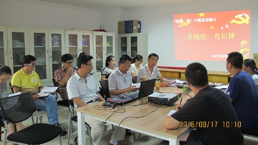 8月17日上午10:00,信息工程学院党总支在行政楼921召开了“两学一做”学习教育第二专题“讲规矩、有纪律”学习研讨会。会议由学院党总支书记胡凤堂主持,全体教工党员参加了会议。会议由学习、研讨两部分组成。