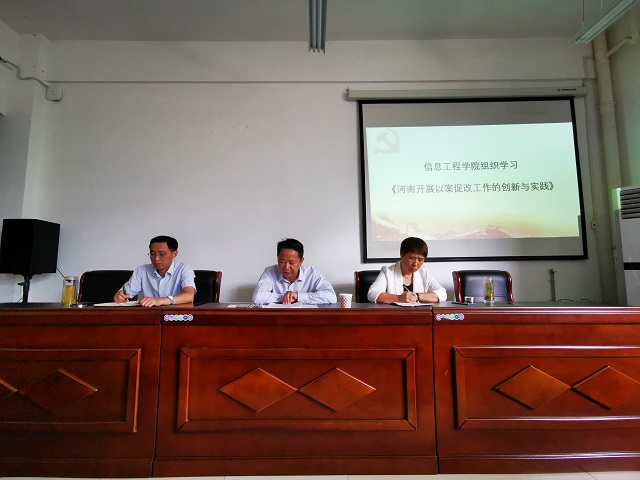 2019年9月24日,信息工程学院开展了集中政治理论学习,集体学习习近平总书记考察调研河南时的重要讲话和指示精神及《河南开展以案促改工作的创新与实践》,学习由院党总支书记梁其宇主持,院全体教职工参加。