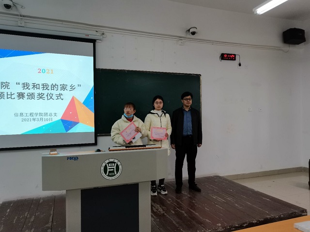 2021年3月10日下午1点,信息工程学院团总支于二教115教室隆重举行了“我和我的家乡”短视频比赛颁奖仪式。院党总支副书记朱猛、院团总支书记严舒平、19、20级辅导员、获奖选手和学生代表参加了本次颁奖仪式。