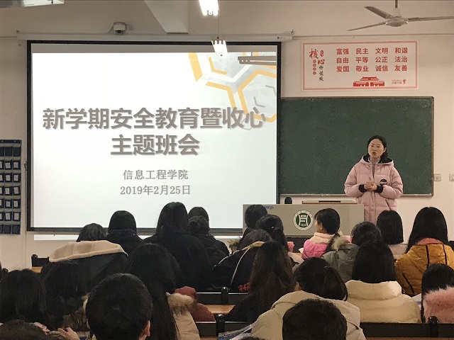 新学期伊始,为了让同学们从假期的散漫中走出来,尽快回归学习状态,2019年2月25日,信息工程学院各年级召开了新学期收心主题班会。此次班会由各班辅导员主持。