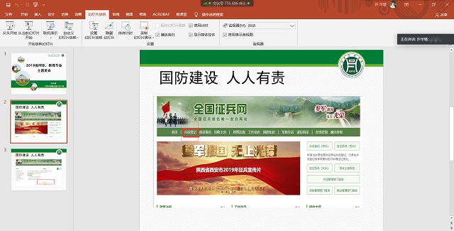 在学院全体辅导员的带领下,各专业班级均开展了内容丰富且形式多样的主题班会,老师们通过以征兵材料的分发、PPT宣讲、视频讲解、图片展示等途径,吸引同学们对于军营和国防的关注。本次班会包含四个主题“参军意义、入伍流程、优惠政策、线上解答”。通过班会让同学们认识军人军队的神圣光荣,了解最新的征兵政策,感受军人的风采和荣誉,鼓励同学们积极投身军营。