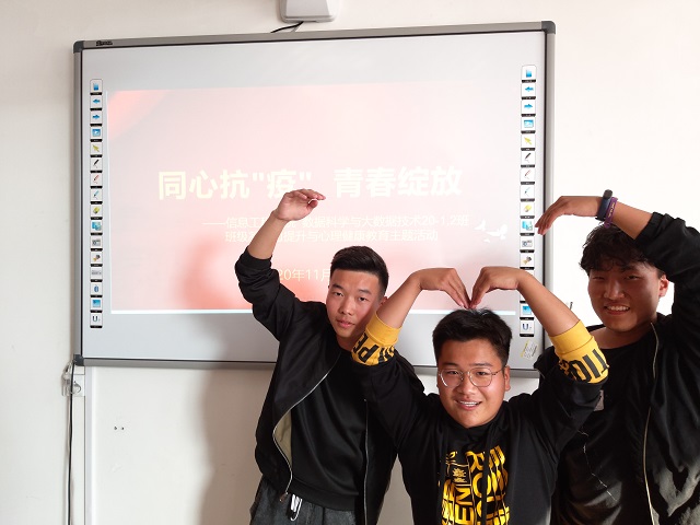 为加强学生的心理健康教育,增进同学们之间的沟通与交流,提升新生班级的凝聚力。2020年11月8日,我院2020级数据科学与大数据专业在校心理工作活动室举行了“同心抗‘疫’,青春绽放”主题班会。辅导员李洋老师、院学生会心理部同学以及2020级新生参与了此次活动。