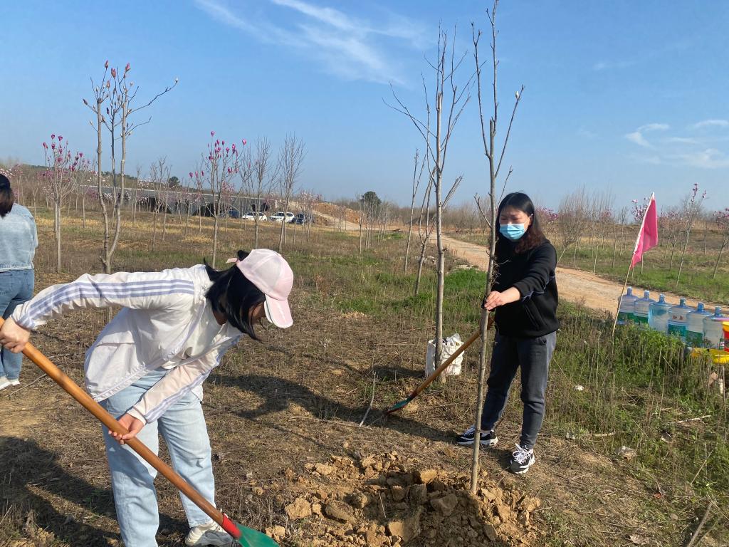 暖阳当空照,植树正当时。学院女老师们前往羊山新区北湖管理区开展赏春植树活动。女教工们欣赏北湖美景的同时,也分工协作、相互配合,搬运树苗、挥锹挖坑、栽种浇水,呈现出快乐祥和的劳动景象。活动最后,分工会也为此次参加活动的女职工发放了礼品,传递了三八节的祝福。