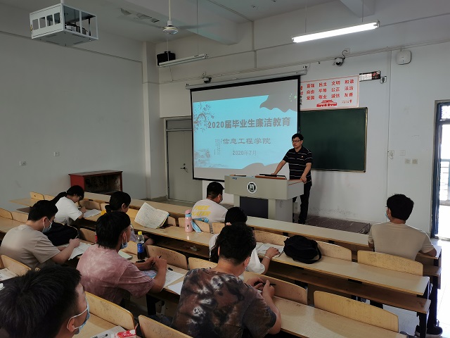 为了提高大学生廉洁意识,扣好人生第一粒扣子,2020年7月3日,信息工程学院党总支副书记朱猛为2020届专科毕业生上了一堂廉洁教育课程。