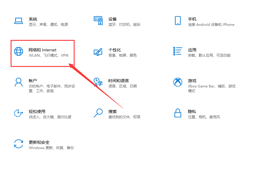 第二步:点击网络和Internet选项,如图4所示;