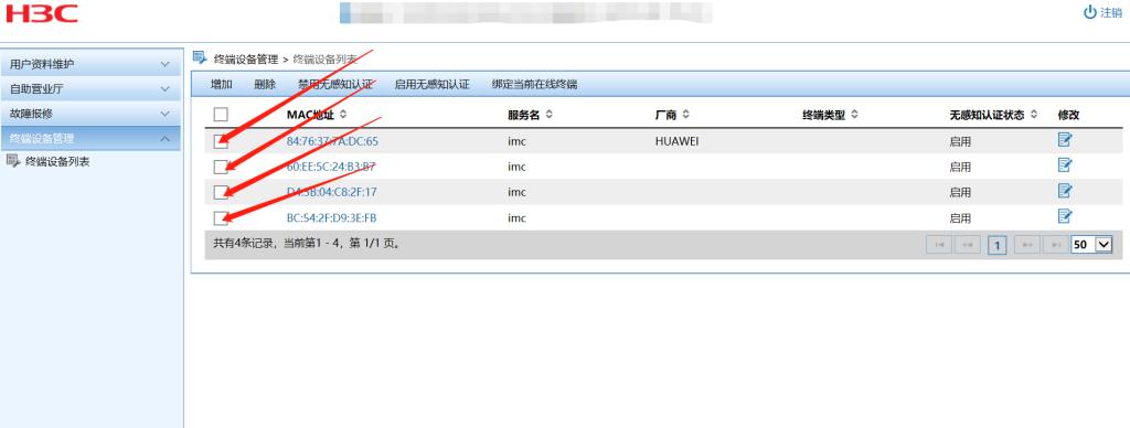 进入控制页面后,在左侧“终端设备管理”中点击“终端设备列表”,删除无用的绑定设备(每个教工号可以绑定3台设备)。完成操作后重复第二步,即可上网,如图13所示。