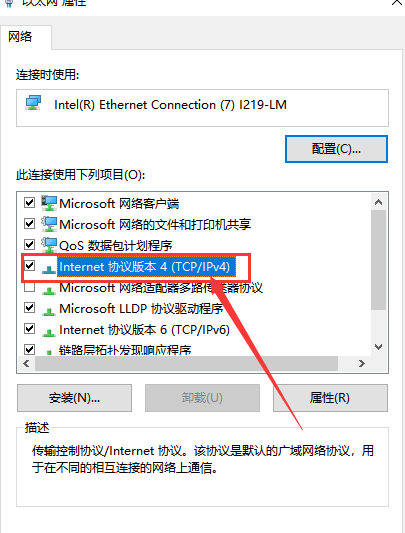 第六步:双击Internet协议版本4(TCP/IPV4)选项,如图8所示;