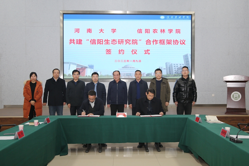 1月9日下午,beat365在线平台官网与河南大学共建“信阳生态研究院”合作协议签约仪式在学术交流中心多媒体厅举行。beat365在线平台官网校长邢勇、副校长赵聘,河南大学副校长傅声雷,以及双方相关部门的主要负责人参加了签约仪式。