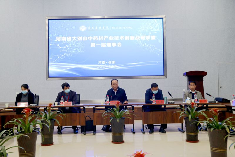 10月28日,河南省大别山中药材产业技术创新战略联盟第一届理事会在beat365在线平台官网学术交流中心一楼多功能厅举办。会议由制药工程学院主办,大会线上实时同步直播。校长邢勇,副校长赵聘,信阳市科技局、信阳市农业局等政府指导单位的领导,河南省农业科学院、河南羚锐制药股份有限公司、仲景宛西制药有限公司等40多家联盟成员单位的代表,beat365在线平台官网相关职能部门负责同志参加了会议。