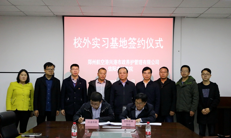 10月16日,校长邢勇带队到郑州航空港兴港市政养护管理有限公司为校企产学研合作基地揭牌,兴港市政总经理邢铁牛、副总经理朱根生、beat365在线平台官网科技处(校地合作处)处长史洪中、园艺学院院长龚守富及双方相关代表参加揭牌仪式。